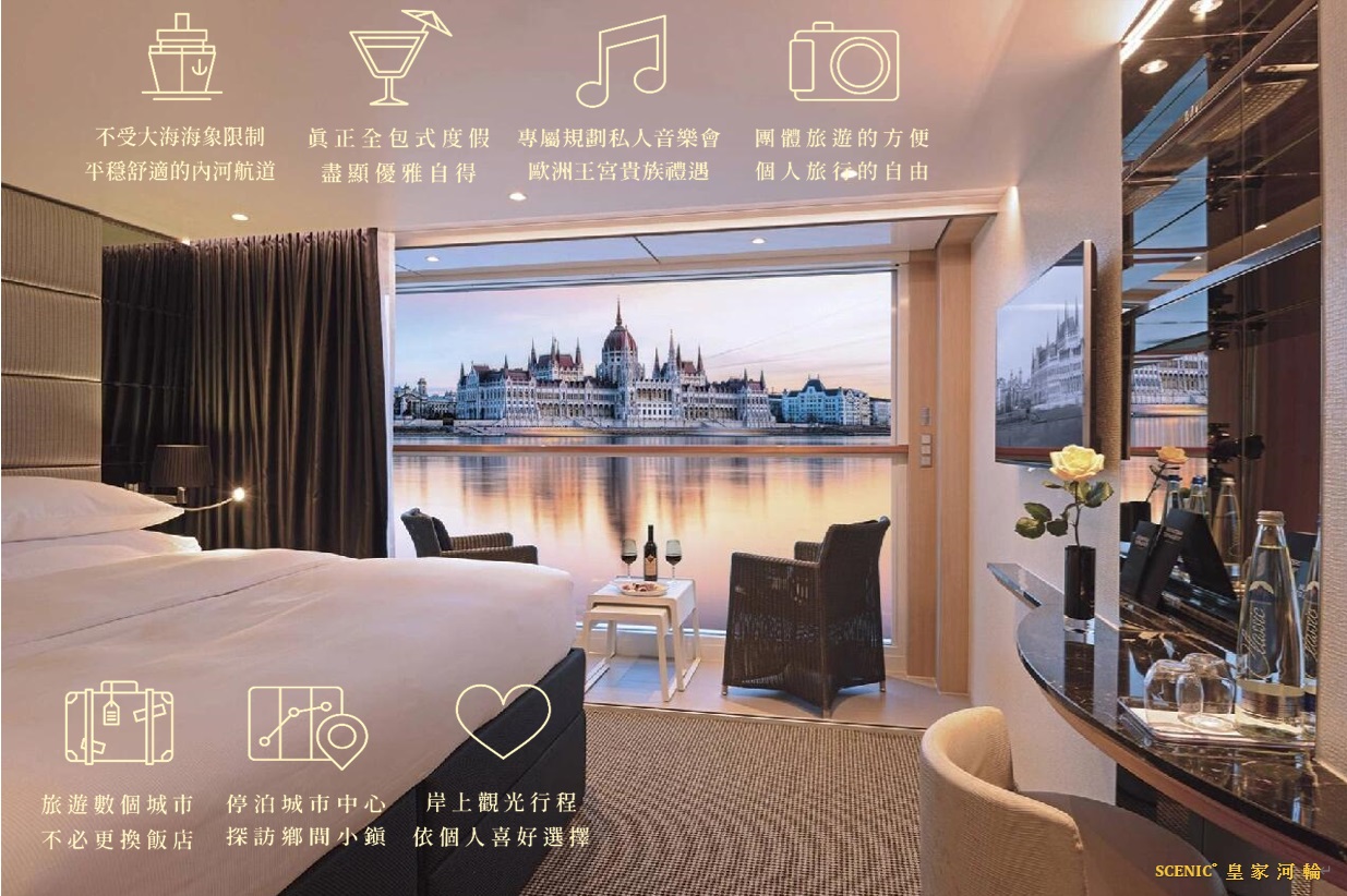 - 精選Scenic皇家河輪,悠遊橫跨《匈牙利、德國、斯洛伐克、捷克、奧地利》等十個國家的多瑙河上,一窺哈布斯堡家族稱霸歐洲百年的興衰歷史。